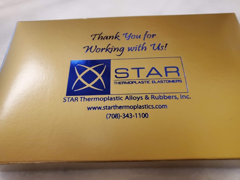 Custom ribbons in a variety of colors with your personalized logo or message are available. We even customize chocolates with your name or logo on them. Call us for possibilities. ORDER BY PHONE ONLY: 847-864-5504 |
