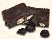 Dried tart Michigan cherries add a wonderful sweet tartness to our almond bark in dark Belgian chocolate.